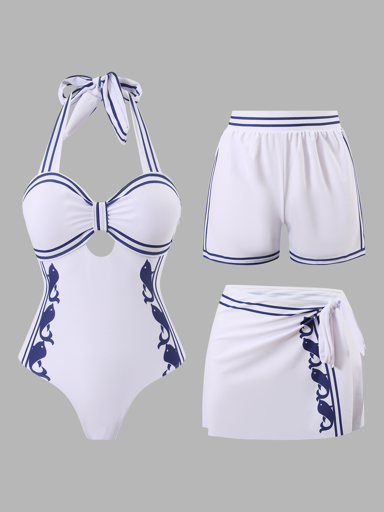 • 2026 popular retro solid color three piece swimsuit bikini sports swimsuit beach party swimsuit
